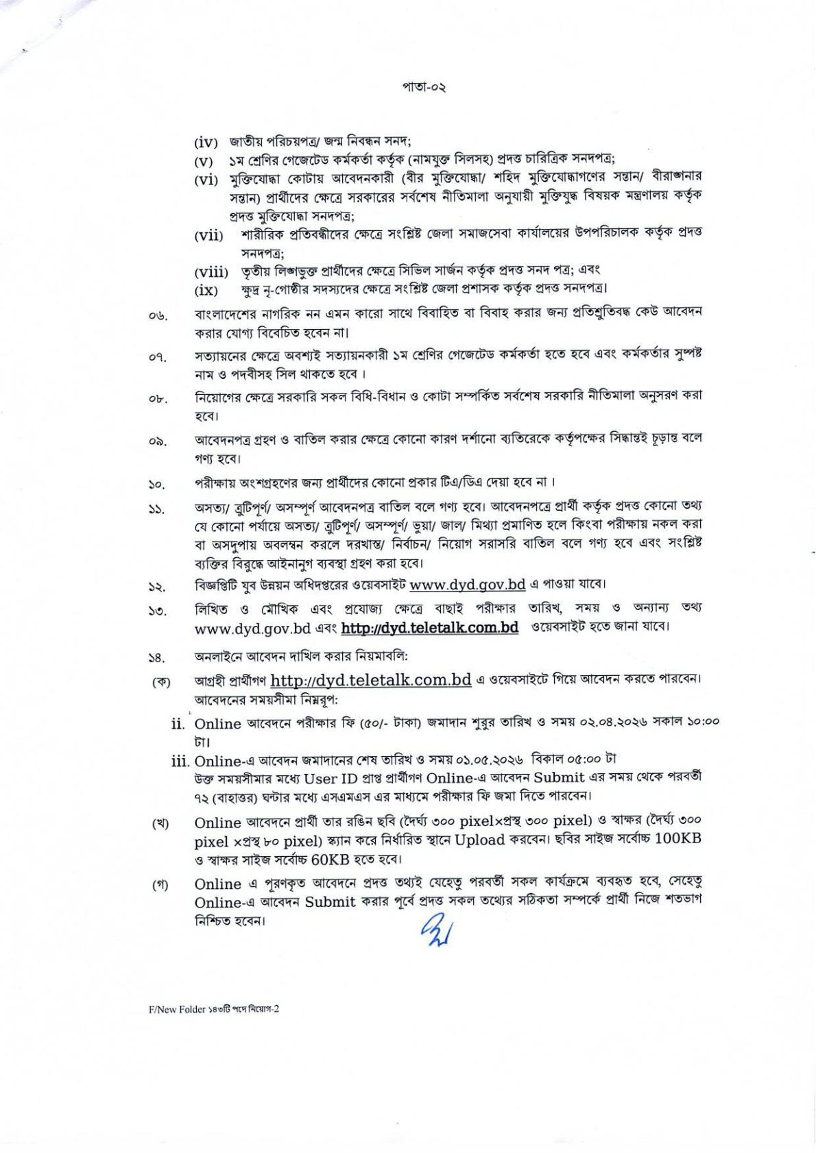 যুব উন্নয়ন অধিদপ্তর নিয়োগ ২০২৬ সার্কুলার